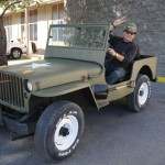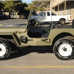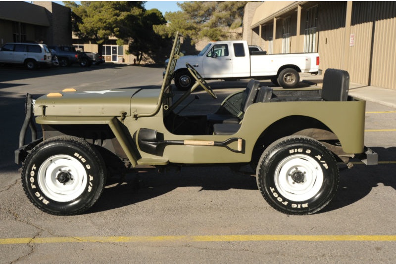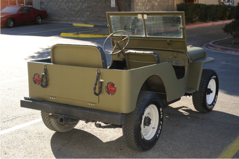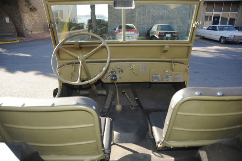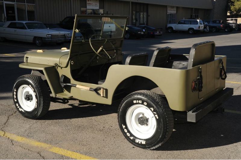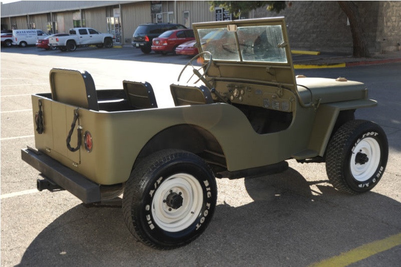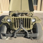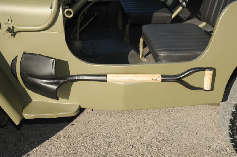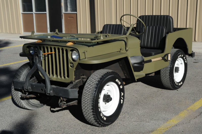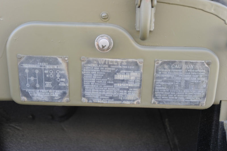 I am listing this 1944 true military Willys Jeep for sale today on December 7th… in tribute to our Greatest Generation — those who fought and lived through World War II …. This great old Jeep has it’s original All Steel body with the correct Olive drab Green Paint.  The owner was a sheet metal worker who did some great and trick work on the body.. and it’s smooth and solid.. all the panels are smooth .. and it rides great.. it shifts and stops and steers and runs like it should.. and none of that popping out of 2nd gear like some of the old Jeep trannys do.. this one works great !   It has newly covered seats, new fuel pump and a new gas tank installed under the back with a trick gas fill opening in one of the back comparments… thers is the usual surface rust underneath.. but the floor pans are all sold…  the 4 wheel transfer case and the rear end all work fine too…  right now the only things I that could use fixing is the speedo cable and the gas tank sending unit.. but those are minor and may be fixed by the time you buy this… the Odometer say over 79K miles, but true mileage unknown.  oh, it’s has the shovel on the side and also very nice wheels and tires… it would be hard to find a nicer authentic WW2 Willys Jeep at this price…  Also has the tow bar if you want to pull it behind your RV.