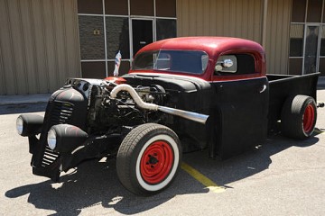 You are looking at a very unique Rat Rod..  a 1950 Dodge pick up truck, with a more recent 90s Chevy 350 V8 motor…  It has the original 1950 VIN plate and is registered also in Nevada as a 1950 Dodge truck.. so no need for smog or other recent safety standards .. whew.. it’s grandfathered in but check your own state to be sure..    It has cool retro hot rod pin-striping by the notorious Zorac of Las Vegas..  House of Kolor candy apple red sparkle top, custom motor cover in front, and not to mention the PBR beer tap !!!!  Unlike most rat rods, this truck has a very roomy and comfy cab inside with nice seats, stereo , headliner,  etc.. oh, also is bagged for air ride and has a fuel cell in the bed under a trap door..  the more you look, the more goodies you will see.. fun truck !