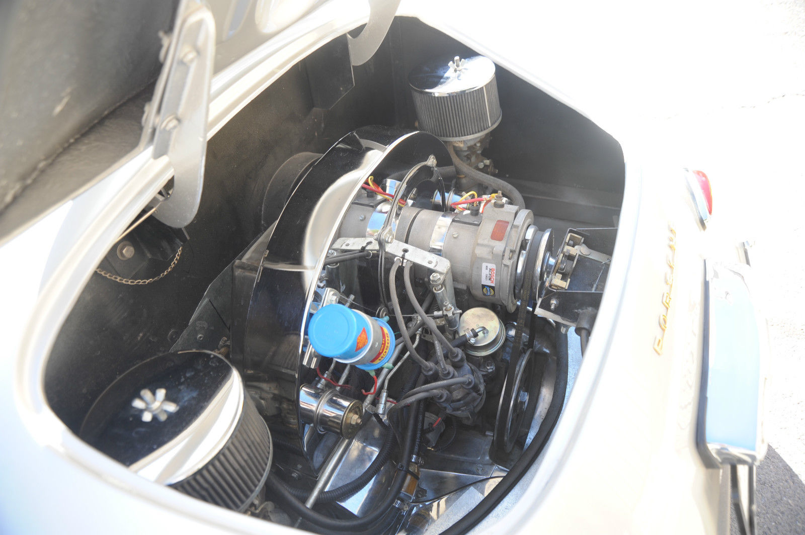 Pristine example of a great build…Current Owner just spent $6000 to freshen it up !  Body is CMC (classic Motor Carriages) out of Florida –  4 Speed tranny with Porsche Wood Stick Shift Knob, 1776 CC (1800) VW Motor with Dual Solex Carbs and approx. 90 HP.   Brand new Bosch coil, Porsche ignition starter, Brand new Vintage Speedster Seats, Brand New Wheels & Tires – 16 inch PORSCHE FUCHS (not replicas) NEW CD Stereo with Pandora, Custom Wood Nardi Steering Wheel….   Has a nice soft flip up convertible top (needs to warm up in sun and stretch before attaching – see photos) ,  nice new Toneau cover, new seat belts, wonderful NEW paint and body with no signs of any cracking or chips …