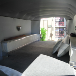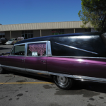 I call this our Un-Dead Sled !  A very cool and RARE 1965 Olds Ninety Eight Hearse that seems to float down the road.  It was a big hit at the Haunted Hearse Car Show here in Vegas last weekend.    The car has a brand new interior…  new front seats and door panels and charcoal gray carpeting up front.  A removable gray carpeted pad in the back.    The car was owned by a hot rod guy here in Las Vegas who was a real motor-head and this was his daily driver if you can believe that.   He recently passed away and I secured this cool & creepy car from his estate and I feel he would’ve really appreciated all my upgrades !   Also has new Firestone tires. It does not have turn signals and is radio delete, but I’m sure you can add your own “killer” sound system. Again the even better thing about this car is how nice it runs.. has a nice rumble but is fast and smooth.  Power steering and nice brakes.  Rear View Mirrors up on the fender to help with that big blind spot on each side…  if you want to really turn heads and haul some interesting cargo, this is the car for you.. even would make a good camper or “Burning Man” vehicle.