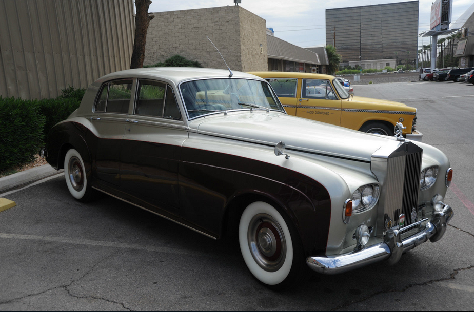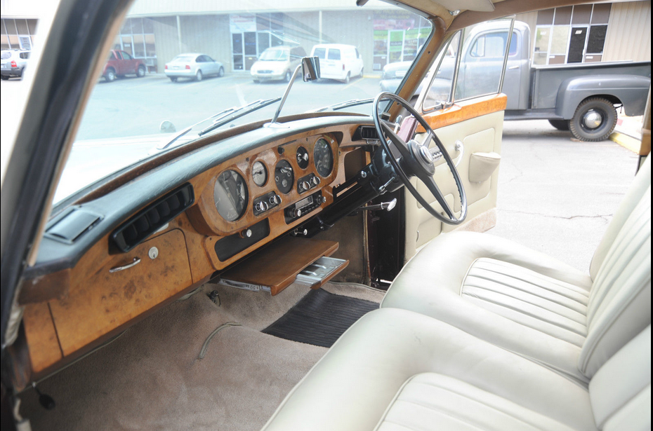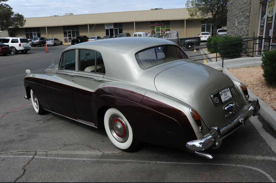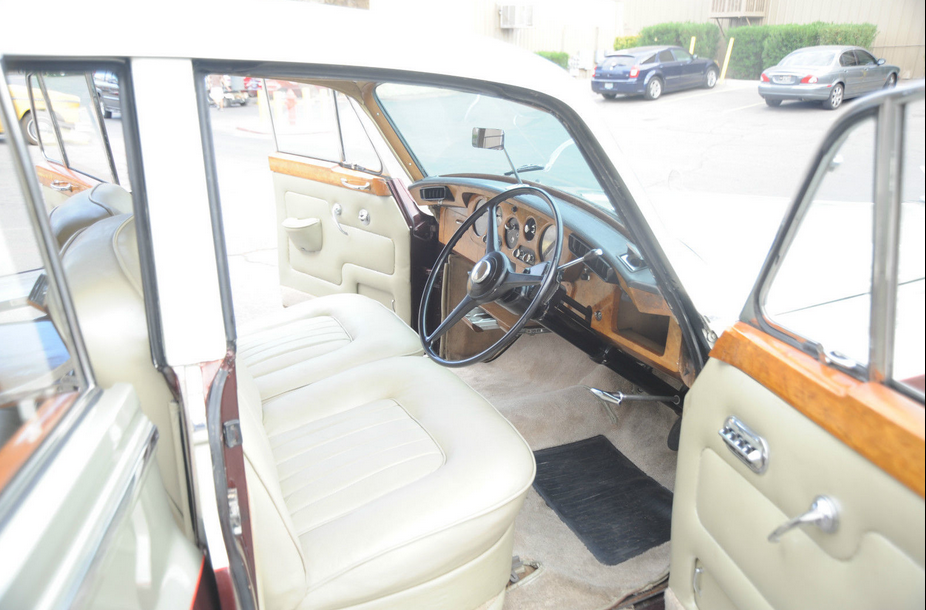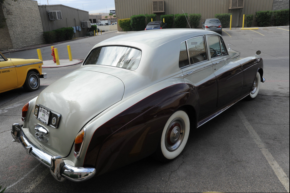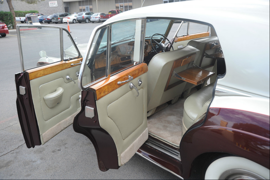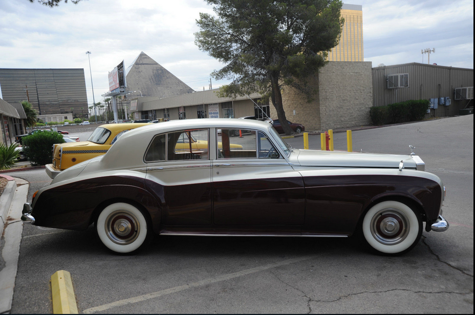 We are selling this cool 1965 ROLLS ROYCE SILVER CLOUD on Consignment for a Vegas man who grew up with this car in Chicago (garage kept)..PLEASE NOTE: THE SAME COMPANY MADE ROLLS & BENTLEY IN 1965 SO SOME OF THE PARTS ARE INTERCHANGABLE.. THIS CAR MAY HAVE SOME BENTLEY PARTS USED DURING RESTORATION – OWNER HAS A BENTLEY GRILL FOR IT ALSO.. BUT IT IS TITLED AS A ROLLS ROYCE IN THE STATE OF ILLINOIS (CAR NOW IN VEGAS!), His father owned it as Sunday driver for Church, going out to Dinner, family drives etc.     This old Rolls still runs and appears well… the paint is newer and not redone by Rolls of course…  but looks nice, great color combination, but not perfect with some little nicks and scratches here and there.   The old girl shows her age a bit , but is in good well-kept condition.  These cars are going for up to $60,000 but this one is a Right Hand drive, so that scares away some buyers, but I think it makes the car more British and even more fun to drive.   The car is very simple and just about everything works…   even has the fold down picnic tables in back, so you can Pass the Grey Poupon !   As far as anything wrong with the car, the trunk lid is not latching properly at the moment… I will add more comments as I spend more time with the car, but I am pricing the car as a good value, so you can make a great buy on this car and  look impressive for less !