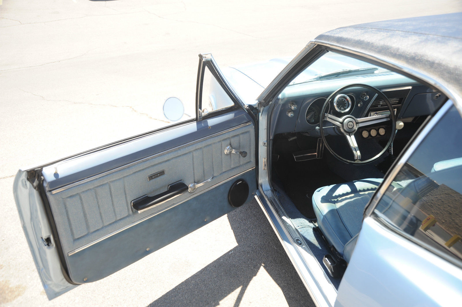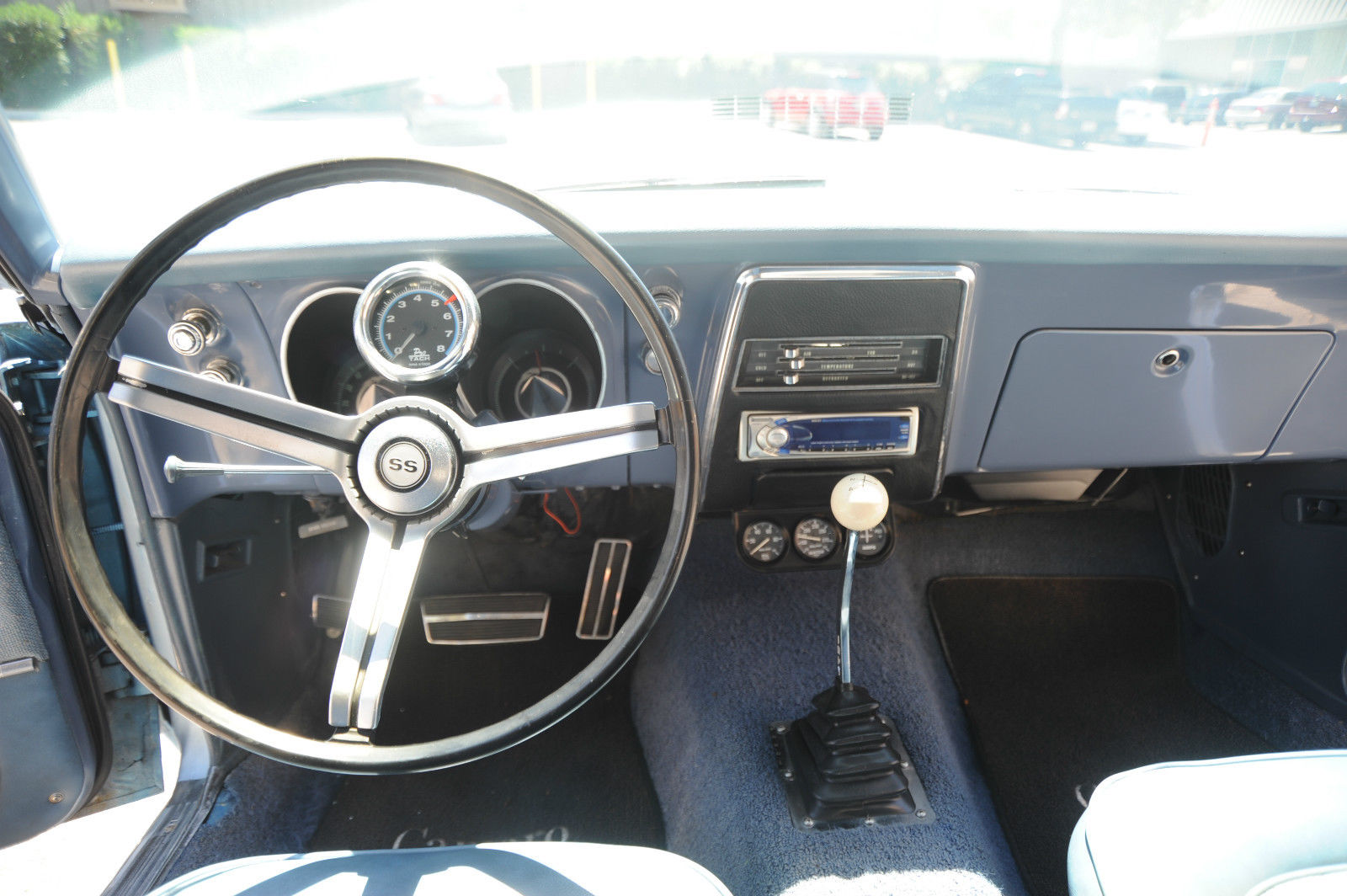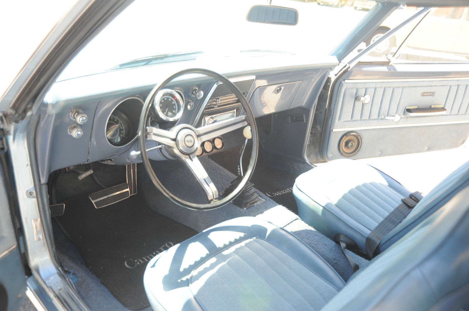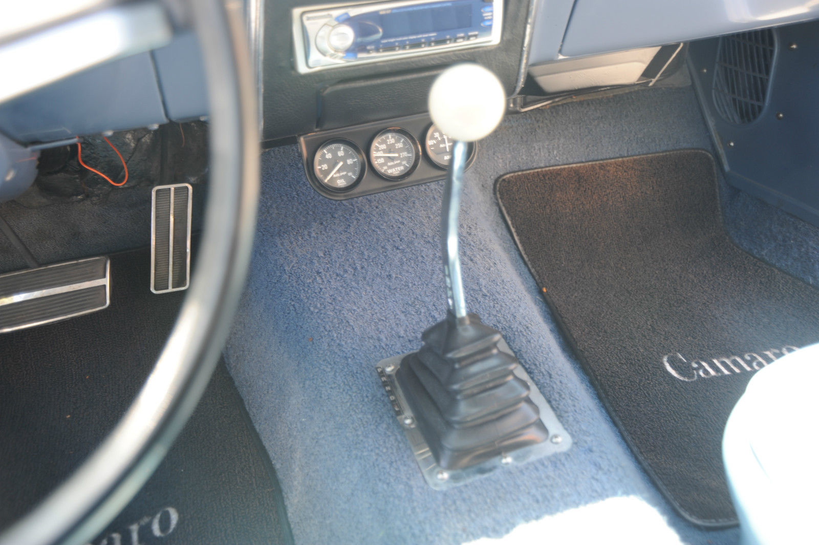 Don’t let the looks of this gorgeous 1967 Camaro fool you…  I believe its an SS Tribute car with some Yenko and 427 badges. and it’s an Automatic not a 4 speed tranny…. . but that is where the bullshit ends… this is a very clean and great running 327 Camaro… with very nice blue mist paint, nearly new blue interior, nice Ralley Wheels with BFG Radial tires…. everything seem to work great including the upgraded Panasonic CD Stereo with Blaupunk speakers.  What looks like a 4 speed tranny is actually a B&M-type automatic shifter.. and this thing runs great… drives, shifts, steers, brakes like a dream.    The interior carpet is still nice, but inside the trunk there is even a brand new blue carpeting kit..  has seat belts… This car is Turn-Key.. just Buy it and Drive it and you will always be happy with it !!!!