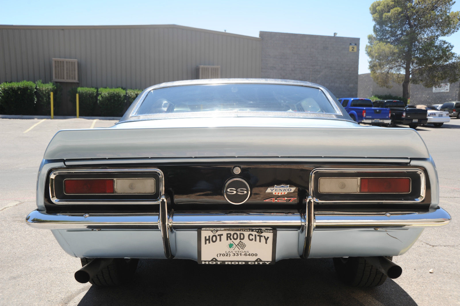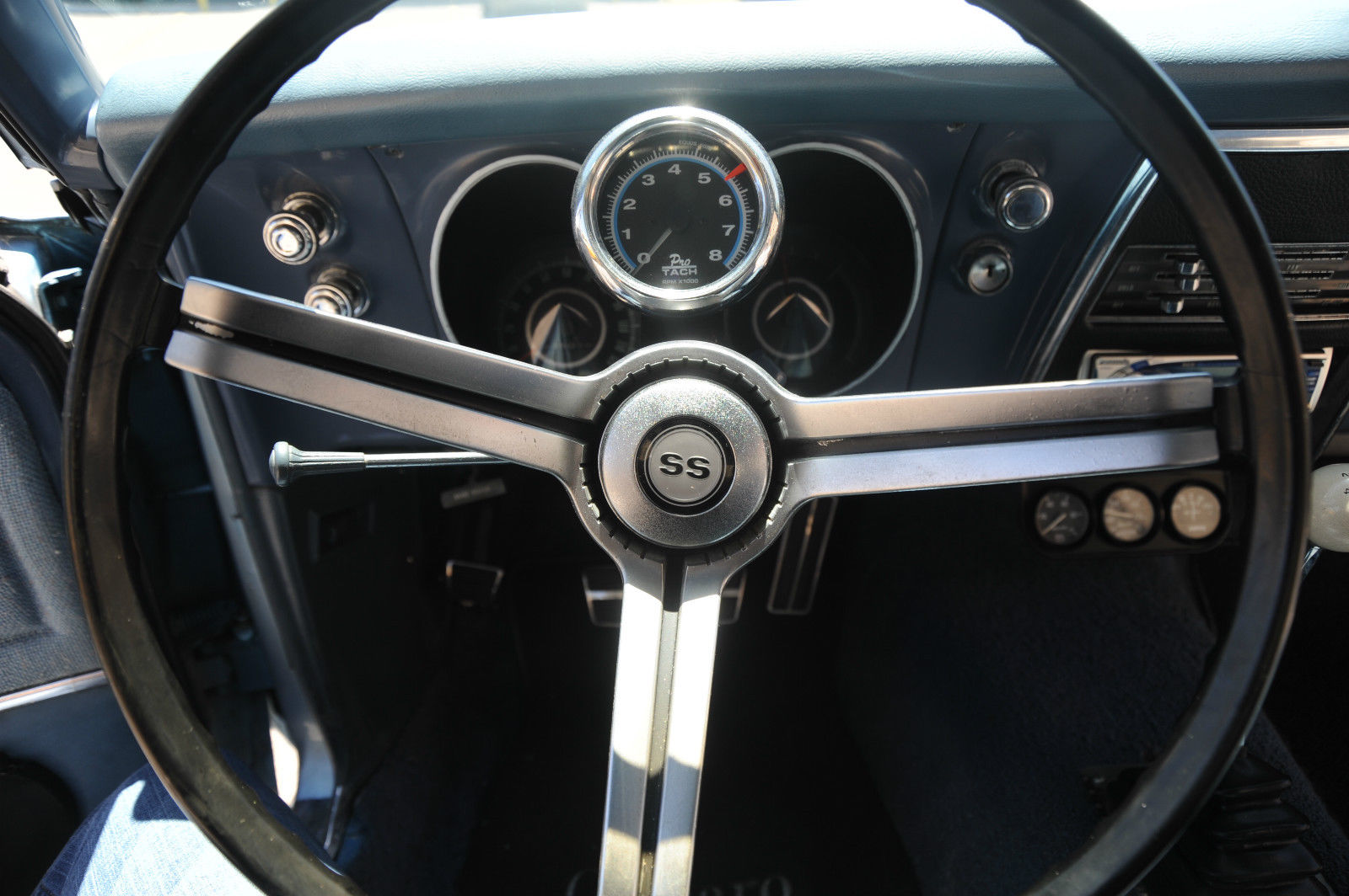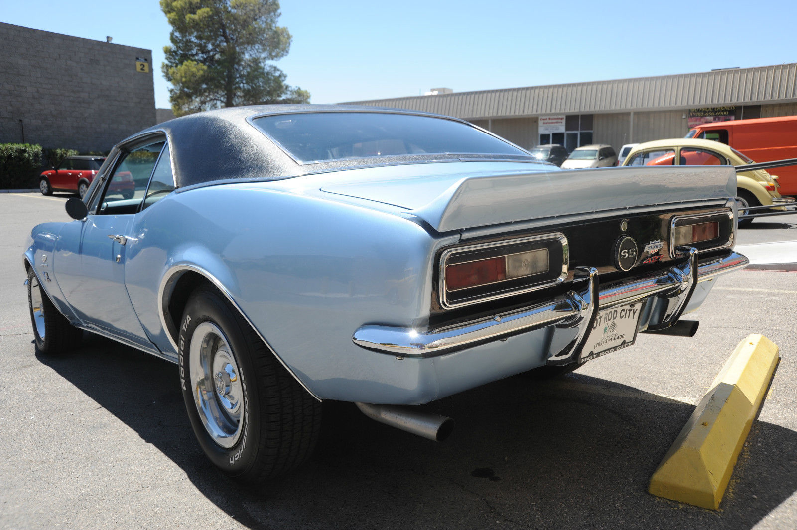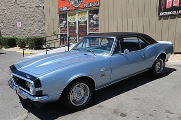 Don’t let the looks of this gorgeous 1967 Camaro fool you…  I believe its an SS Tribute car with some Yenko and 427 badges. and it’s an Automatic not a 4 speed tranny…. . but that is where the bullshit ends… this is a very clean and great running 327 Camaro… with very nice blue mist paint, nearly new blue interior, nice Ralley Wheels with BFG Radial tires…. everything seem to work great including the upgraded Panasonic CD Stereo with Blaupunk speakers.  What looks like a 4 speed tranny is actually a B&M-type automatic shifter.. and this thing runs great… drives, shifts, steers, brakes like a dream.    The interior carpet is still nice, but inside the trunk there is even a brand new blue carpeting kit..  has seat belts… This car is Turn-Key.. just Buy it and Drive it and you will always be happy with it !!!!