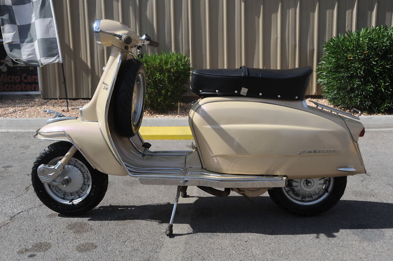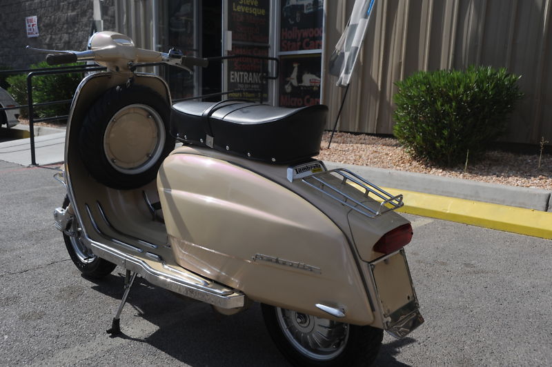 NV Dealer 40339 , stock 125 LI 081537,  I have sold many of these wonderful hard to find vintage scooters, but please read this carefully before bidding… as there are not any refunds and no warranties expressed or implied… they are sold “AS IS – WHERE IS” — also your deposit is also Non-refundable so please no drunk-bidding !!! lol  Thank you and read on and good luck…This is a rebuilt original 1967 LAMBRETTA LI model made in Italy with 125 cc + recently rebuilt motor..  I have a source in Asia who finds these rare scooters for me and restores them to my exacting American expectations.  I inspected and rode this one myself in Asia, before bringing it here to Vegas. It’s got a nice 60s era Tan paint job, but there is also a modern hint of purple pearl that is really cool !!!!  This baby starts right up and seems very solid and reliable.. but again maybe not for every day commuting.. more of a fun and rare collector item you can buzz around town on Sunday rides ! Original Frame, Headset, Motor case etc, but just about everything is brand new or the best used original or reproduction parts.. so it’s almost like a brand new but over 40 year old vehicle. …  it is loaded with cool goodies.   It is street legal and the 125 CC has plenty of power to use as around town transportation to school or market if you really want (not Freeway legal in some states), but most people use these for fun outings to zip around town and as a great collectors item that will keep or go up in value.  Most of these vintage scooters did not survive in America due to our “use it up and throw it away” mentality of the 50s, 60s and 70s.  – They are a work of art as well as running great !!!!