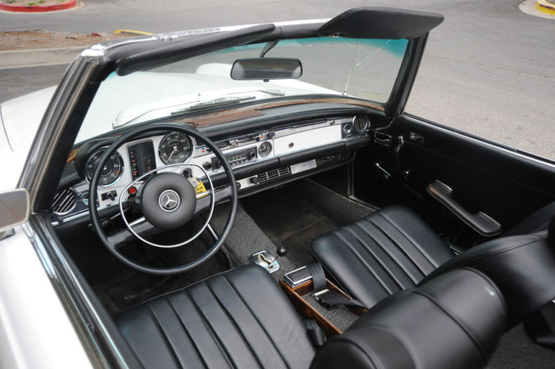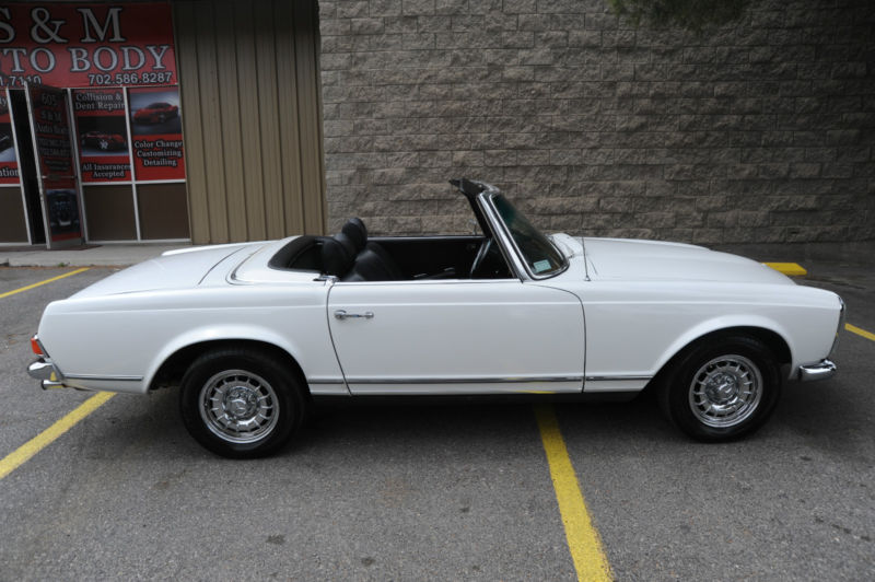 Nevada Car Dealer # 40339 , Vin # 11304412021767 – Miles on ODO 82,929. My customer here in Las Vegas is selling another stunning Mercedes from his collection.. completely rebuilt by German Auto body mechanic in 2008 is this 1971 280 SL “Pagoda”  .. considered by many to be the most desirable of the vintage SLs….  it has a great running ORIGINAL MOTOR and just about everything works, even the radio and clock.. our owner is very meticuous about his cars.. PLEASE NOTE THAT THE CAR COMES WITH THE ORIGINAL WHEELS AND HUBCABS SHOWN – NOT THE AFTERMARKET MORE MODERN CHROME RIMS CURRENTLY ON THE CAR.. BUT THOSE CAN BE PURCHASED AS WELL FOR AN EXTRA $750 (or I will try to get the owner to include for free if your purchase price is right!).