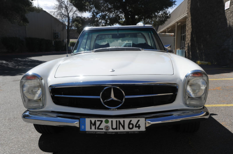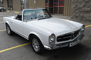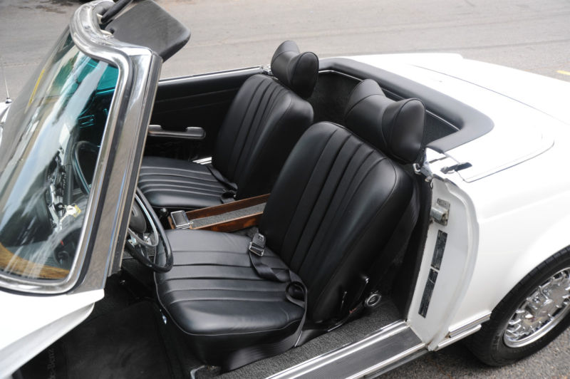 The car has the matching removable Hard Top with Stand.. .the lining on the hard top is in wonderful condition. The car has very nice leather seats and door panels.  From what we can tell.. THERE IS NO RUST on the car, but I will say very little just in case.  The front and back fenders and grill were replaced during the restoration with MB Factory Parts ! Car still has original aluminum trunk lid, hood and doors. The car was completly serviced recently and has new fuel injectors. the original motor was rebuilt about 5000 miles ago, and the Auto transmission was just adjusted and serviced… the owner has all the receipts from his maintenance as well as the 2008 restoration….  The AC is currently NOT working but all the parts are there… it also has new shocks, new brakes, a new exhaust, 4 Disc CD Changer,  All the chrome is in amazing condition… wonderful Dash and steering wheel, etc.. even the light in the glove box works !