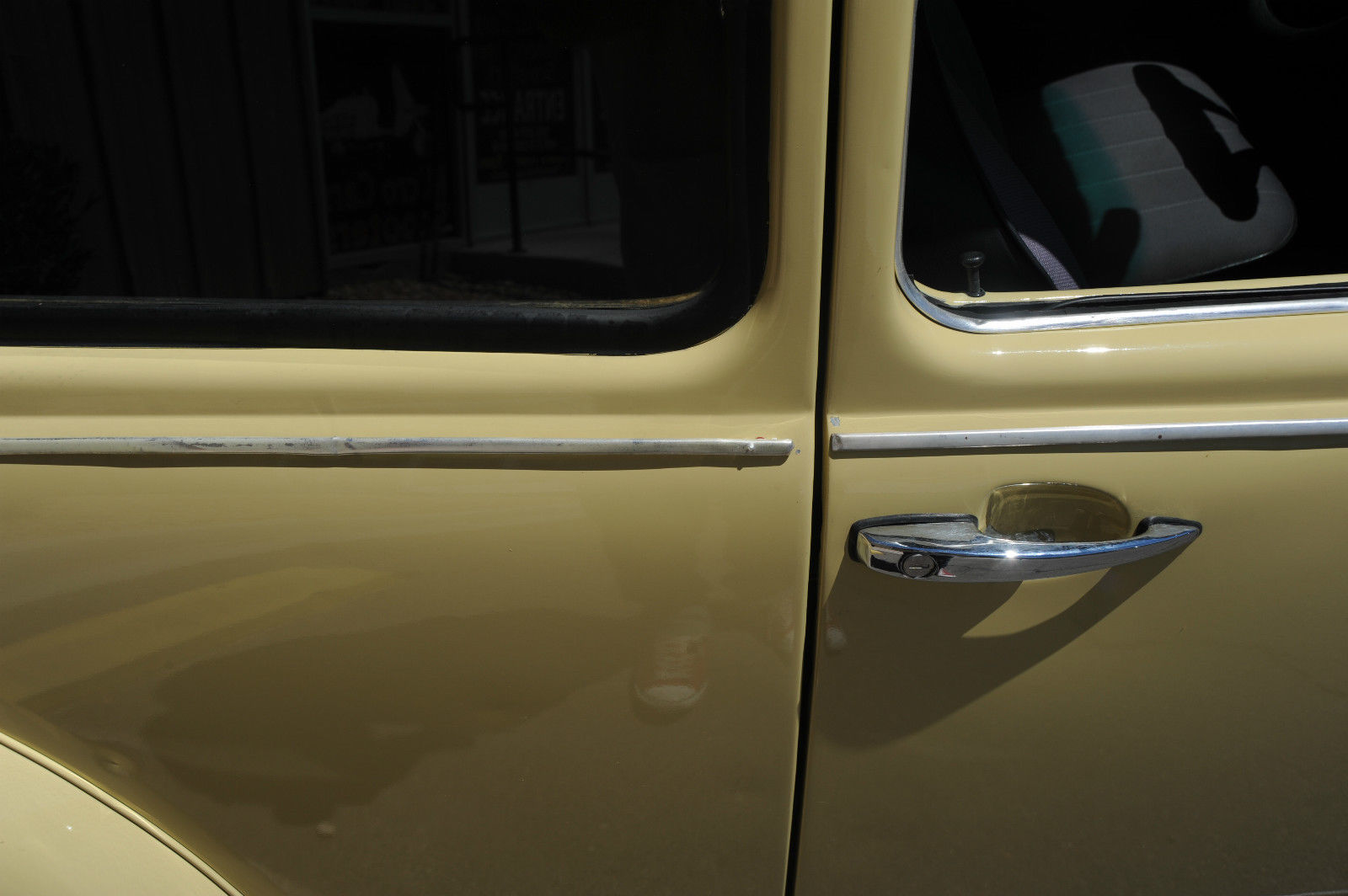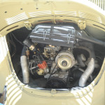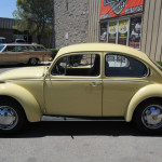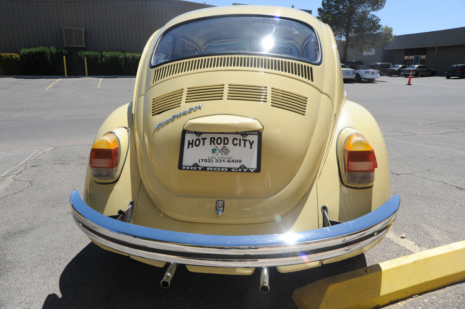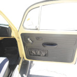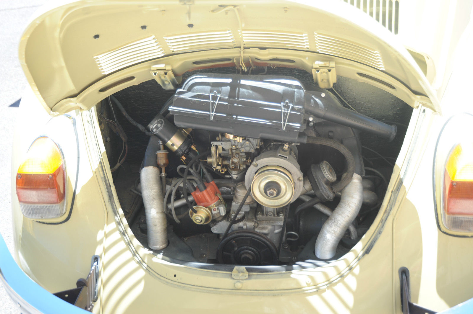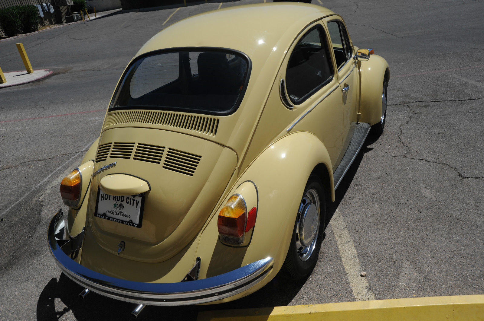 Has recent new  Shantung Yellow Paint, New or almost new Grey Seat material and Black door panels, it starts right up and runs strong and true easily at 70 to 75 mph… great steering and brakes… you can’t go wrong with this cute little yellow Bug !   The only thing I see is some slight rust specs on the wheels and trim… a little on the door handle… and some oxidation of the original trim… and some fading on top of the Back Taillights.  Overall a very nice car for the money !!!
