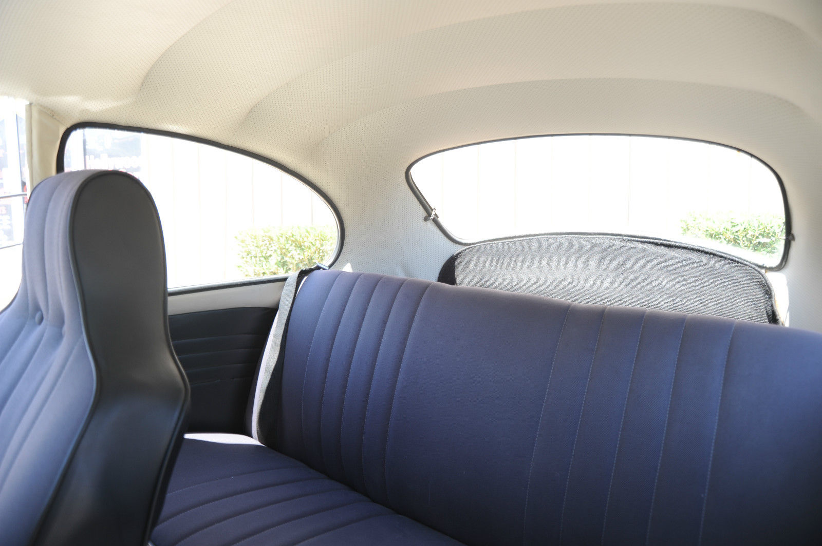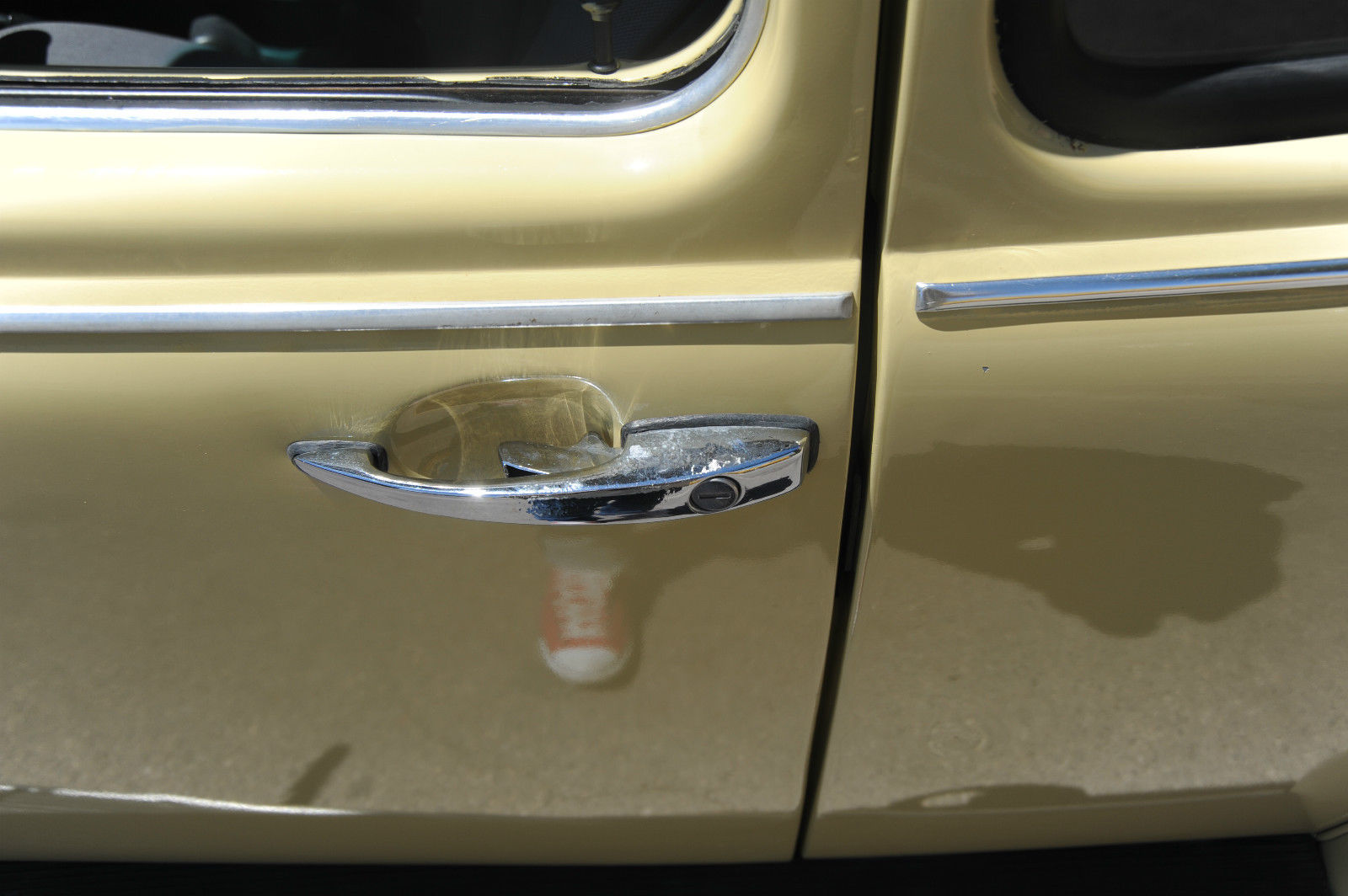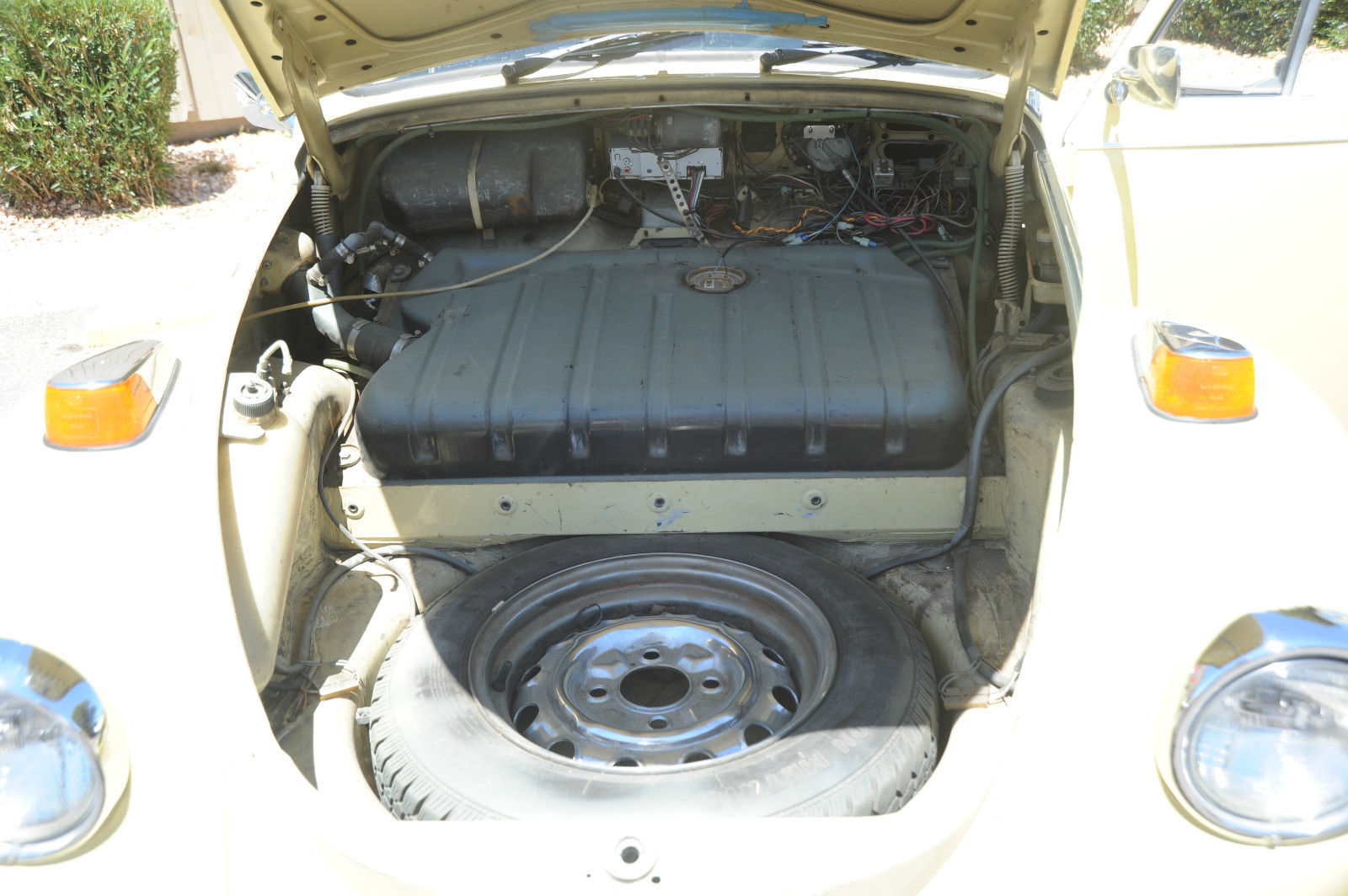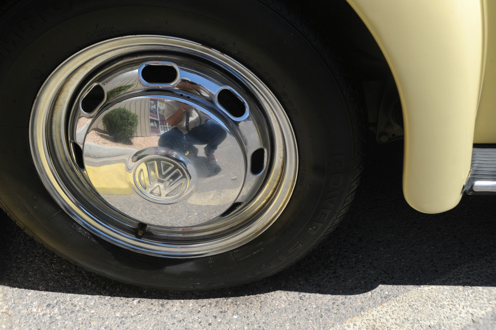 Has recent new  Shantung Yellow Paint, New or almost new Grey Seat material and Black door panels, it starts right up and runs strong and true easily at 70 to 75 mph… great steering and brakes… you can’t go wrong with this cute little yellow Bug !   The only thing I see is some slight rust specs on the wheels and trim… a little on the door handle… and some oxidation of the original trim… and some fading on top of the Back Taillights.  Overall a very nice car for the money !!!