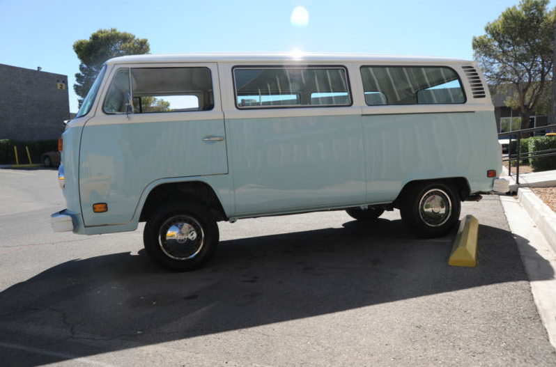 Nevada car dealer # 40339.  The last owner had this bus for over 29 years and it was garage kept, well-maintained and babied and it shows. 150,000 Actual miles. This is my 5th VW bus and they always sell fast… a 1978 VW bus with baby Blue & White paint.. the best thing about this bus is that it always fires right up and runs strong, shift easily and turns around on a dime.. does everything great… runs, stops, shifts, turns and brakes…very fun and a blast to drive with lots of thumbs up everywhere it goes … everything seems to work, but the stereo is old skool and should be replace with modern sounds… reportedly the bus was repainted once and the interior is very nice and fairly new, the motor was rebuilt about 10K miles ago I was told…. nice Michelin tires,  really solid pancake motor runs well !  Just a nick here and there, but a very good looking, straight and great all around and rare VW Bus…